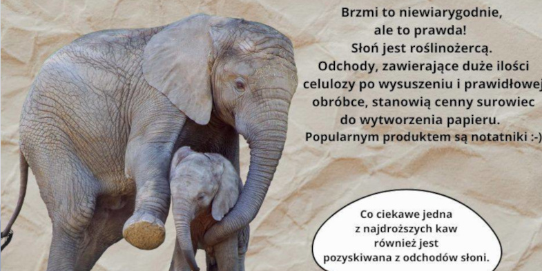 Czytaj dalejCzy wiesz, że z odchodów słonia można zrobić papier? Brzmi to niewiarygodnie, ale to prawda! Słoń jest roślinożercą. Odchody, zawierające