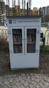 gablota na książki przy placu zabaw na terenie parku przy os. Malinka