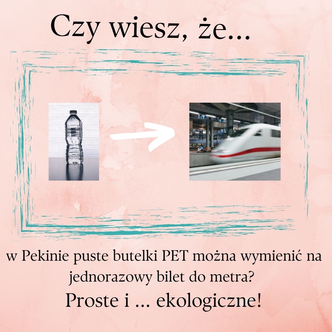 Grafika przedstawiająca butelkę z tworzywa sztucznego oraz zarys metra