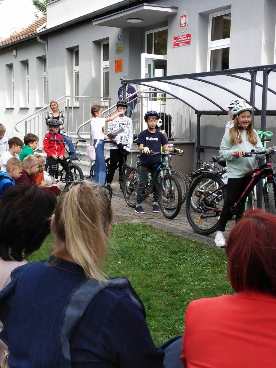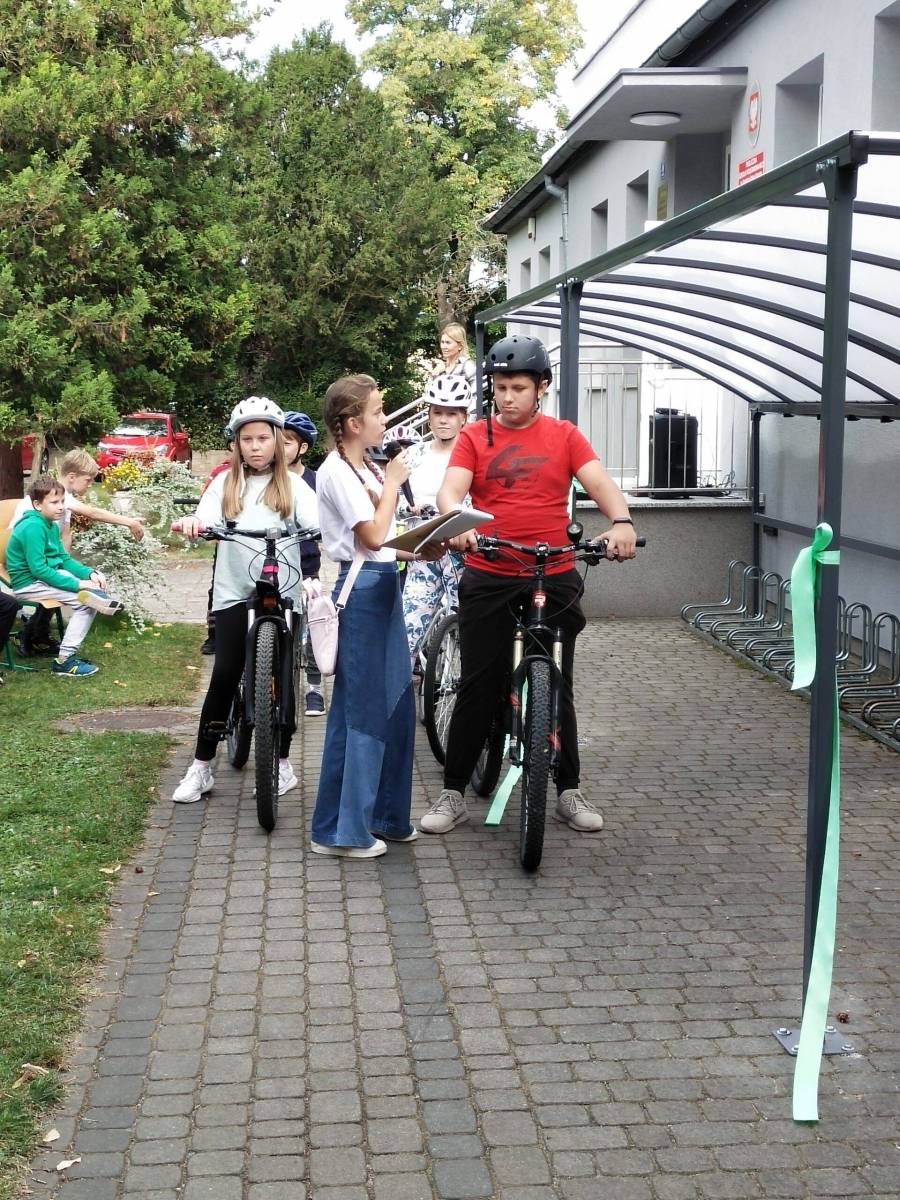 Państwowa Szkoła Podstawowa nr 32 w Sławicach zajęła I miejsce w konkursie Opolskie EkoGranty 2022/2023 otrzymując grant w wysokości 8 000,00 zł. W ramach nagrody placówka postawiła wiatę rowerową dla swoich uczniów. W dniu 6 października nastąpiło uroczyste otwarcie wiaty w którym udział brali m.in. uczniowie, dyrektor szkoły Pani Barbara Ottenbreit oraz Pani Iwona Kowalczuk – Naczelnik Wydziału Gospodarki Odpadami Komunalnymi z UM Opola. Jeszcze raz gratulujemy wygranej 🙂