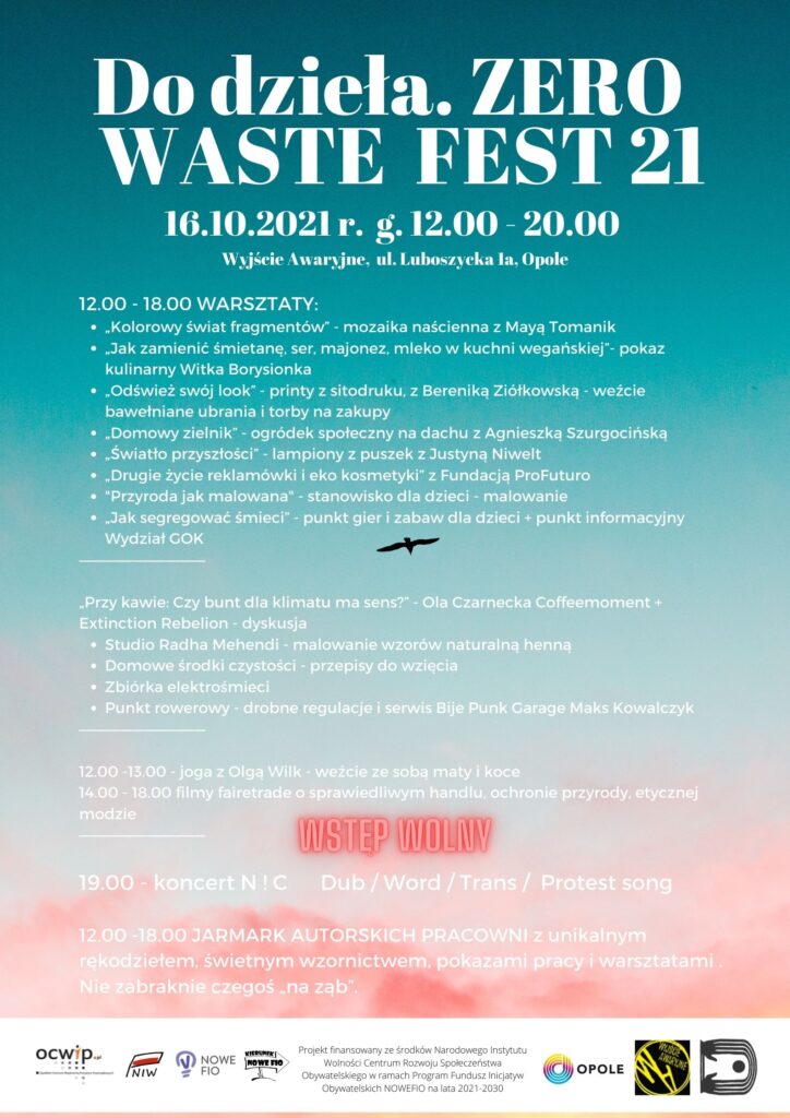 Informujemy, że na zaproszenie Grupy Inicjatywnej Do Dzieła, Wydział Gospodarki Odpadami Komunalnymi weźmie udział w Festiwalu „Do Dzieła. ZERO WASTE FEST”